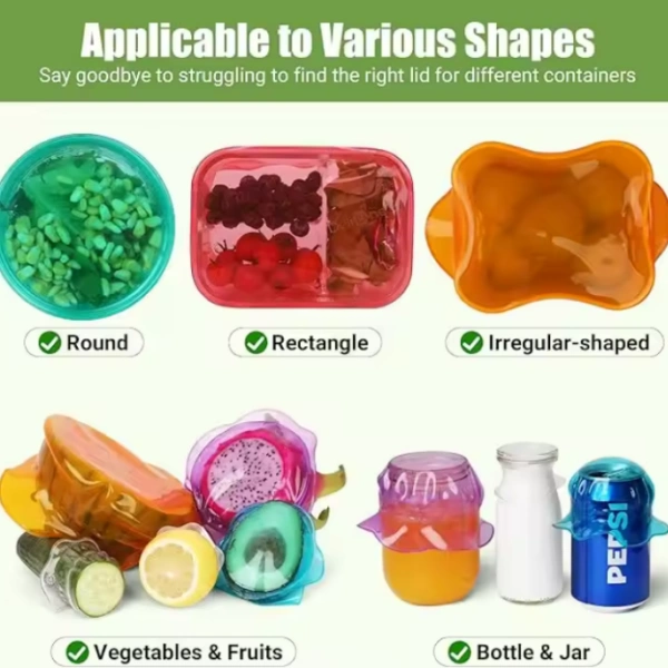 Silicone stretch lids can expand to fit various container sizes and shapes. Whether it’s a small cup or a large mixing bowl, one lid can adapt to multiple uses.