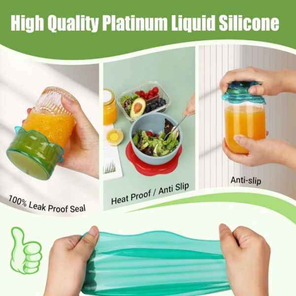 The natural grip of silicone ensures a secure seal, preventing spills and maintaining freshness. This is especially useful for storing liquids, leftovers, and fresh produce.