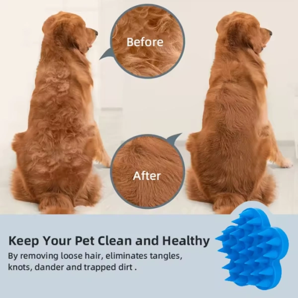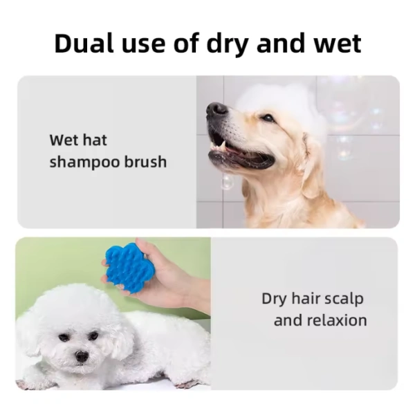A silicone pet grooming bath brush is a multi-functional grooming tool made from soft, flexible, and durable silicone material. It is designed to help remove dirt, loose fur, and dandruff while providing a gentle massage during bath time. Unlike traditional hard-bristle brushes, silicone brushes are safe, non-irritating, and suitable for pets with sensitive skin.